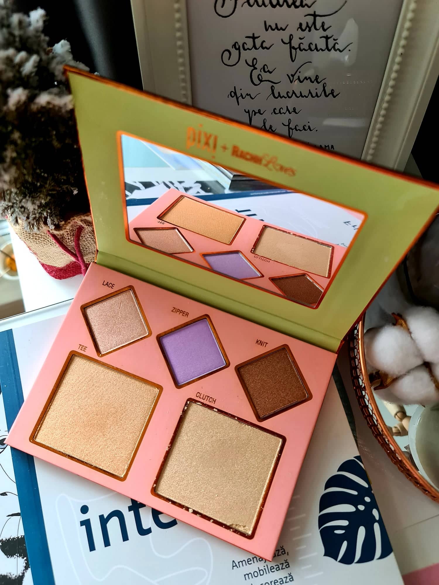 Singurul produs de machiaj de la Pixi este această paletă de iluminatoare. Îmi plac produsele lor de skincare, dar nu știam la ce să mă aștept de la produsele de machiaj. Am rămas surprinsă, deoarece sunt foarte pigmentate și arată frumos pe ten. Intensitatea lor este moderată și se poate construi, dacă vă doriți sclipiri intense. Eu prefer produsele buildable, deoarece astfel pot construi acoperirea și intensitatea în funcție de nevoile mele sau ale clientelor mele. Paleta aceasta are 5 nuanțe diferite, din care doar 3 am folosit. Ultimele două, de pe rândul de sus, sunt mai mult potrivite pentru farduri de pleoape decât pentru iluminare. Această paletă este creată în colaborare cu o tipă de pe YouTube pe care o urmăream acum ceva timp, îmi plac colaborările pe care le au brandurile cu diferite persoane din online, deoarece nuanțele sunt diferite și fiecare își pune amprenta asupra produsului creat, singura problemă este că toate aceste produse sunt în ediție limitată.